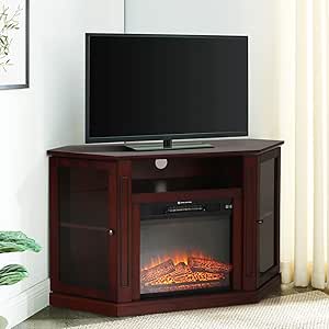 Mfstudio Corner Electric Fireplace Tv Stand For Tv S Up To 55 1400w Insert Fireplace Heater With Adjustable Led Flame Logs Remote Control 48 Inch Wood Storage Cabinet With Glass Doors Cherry Home Kitchen